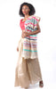 This natural color saree in tussar silk with digitally printed details in modernized madhubani art all over, a contrast colorful border design. An elegant pick to don at festive occasions, buy this saree online and style it with a pair of ethnic earrings and embellished sandals to make a statement. This saree comes with an unstitched all over printed blouse piece. MEASUREMENTS:- Saree: Length - 5.50mtr, Width - 44.5 in. The model is wearing a blouse from our stylist's collection. If you want the blouse the model wearing contact our customer service to order.