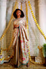 This natural color saree in tussar silk with digitally printed details in modernized madhubani art all over, a contrast colorful border design. An elegant pick to don at festive occasions, buy this saree online and style it with a pair of ethnic earrings and embellished sandals to make a statement. This saree comes with an unstitched all over printed blouse piece. MEASUREMENTS:- Saree: Length - 5.50mtr, Width - 44.5 in.  The model is wearing a blouse from our stylist's collection.  If you want the blouse the model wearing contact our customer service to order.